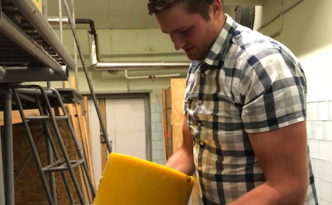 原料となるみつろうには、色の幅があります。気候や花の育ち方、栄養素によって、またミツバチの行動範囲に変化する要素がたくさんあり、それをコントロールするのは至難の業。ですが、ヤーニスさんは色が統一であるよう丁寧に調整しています。