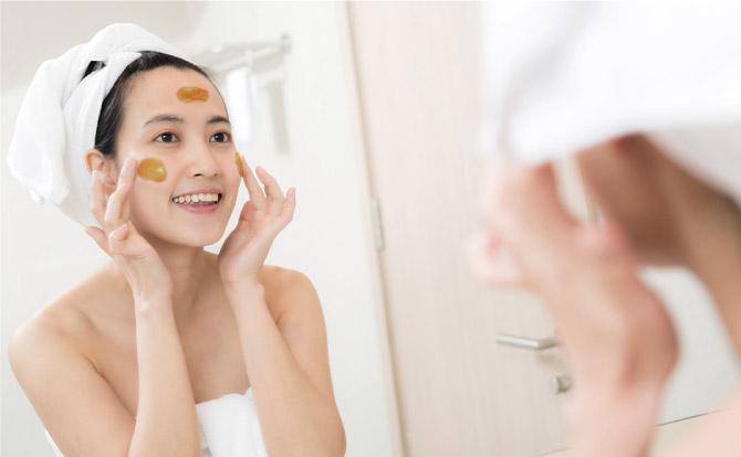 お使いの洗顔料をよく泡立て、サウナハニーを2、3滴加えます。毛穴の黒ずみケアにおすすめです。